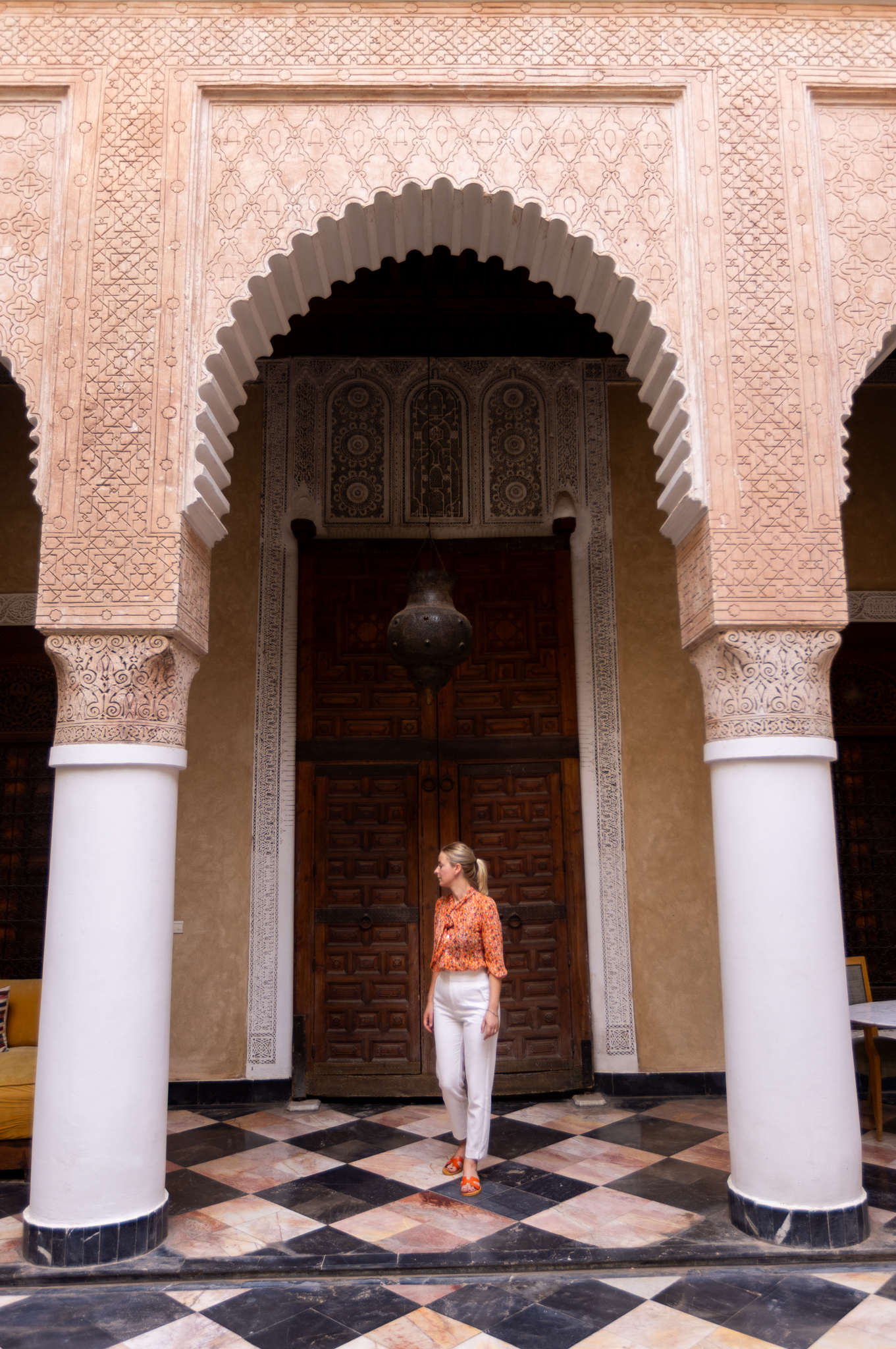 Arrive early in Marrakech, where your private driver will greet you at the airport and escort you to your riad or hotel for check-in. Your guided exploration of the city, with co-founder Mohamed Elaamrani, begins around 10:00 AM (or later if preferred). Visit the splendid Bahia Palace, a masterpiece of Moroccan architecture filled with ornate courtyards and mosaics. Stroll through the Medina, a maze of vibrant souks filled with spices, leather goods, and artisan crafts. Stop at the Jemaa el-Fna Square, Marrakech’s beating heart, alive with storytellers, musicians, and market stalls. If time allows, visit the beautifully restored Ben Youssef Madrasa, the former Qur’anic school renowned for its intricate zellij tilework. In the evening, relax with a rooftop dinner overlooking the city’s twinkling lights.