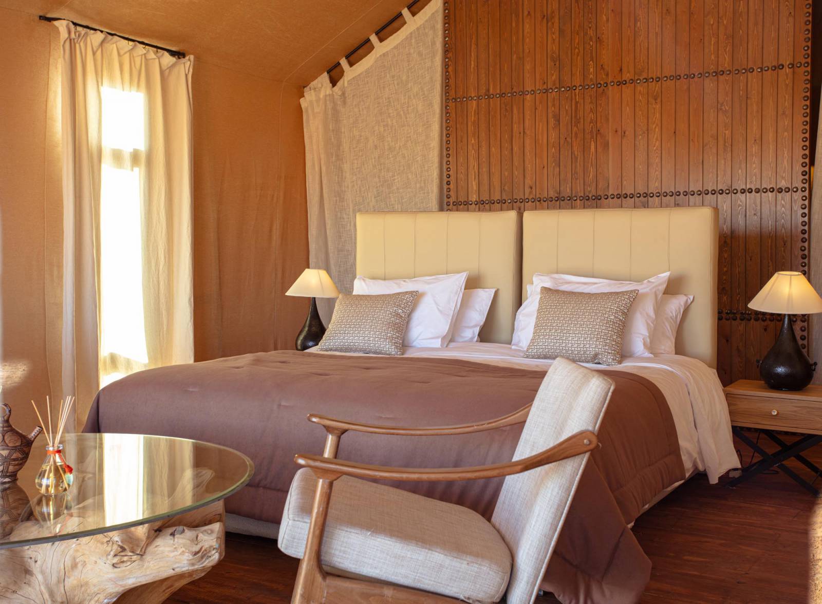 A pinnacle of discreet elegance, this camp offers sophisticated tented suites, tailored service, and total seclusion. Each tent features rich textiles, handwoven rugs, and private en-suite bathrooms. Expect impeccable dining, sunrise yoga on the dunes, and exceptional attention to detail, from the scent of orange blossom in your linens to your hand-selected evening wine.